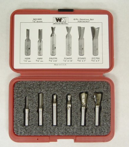 WHITESIDE 605 6 PC 1/2 SHANK INCRA ROUTER BIT SET C/O #1058 #1062 #D9-376 #D14-55 #D7-625 AND #D7-750 Reviews
